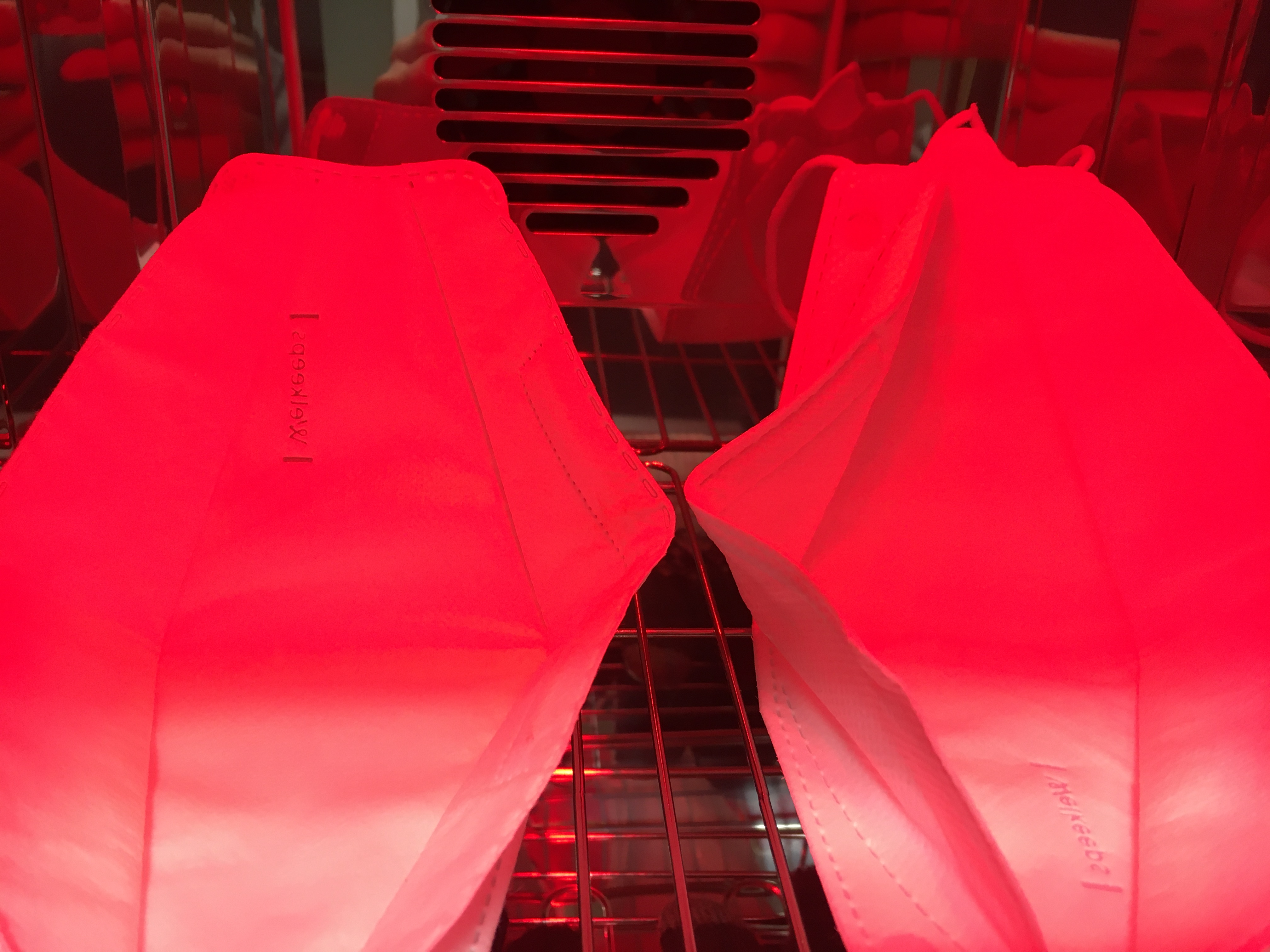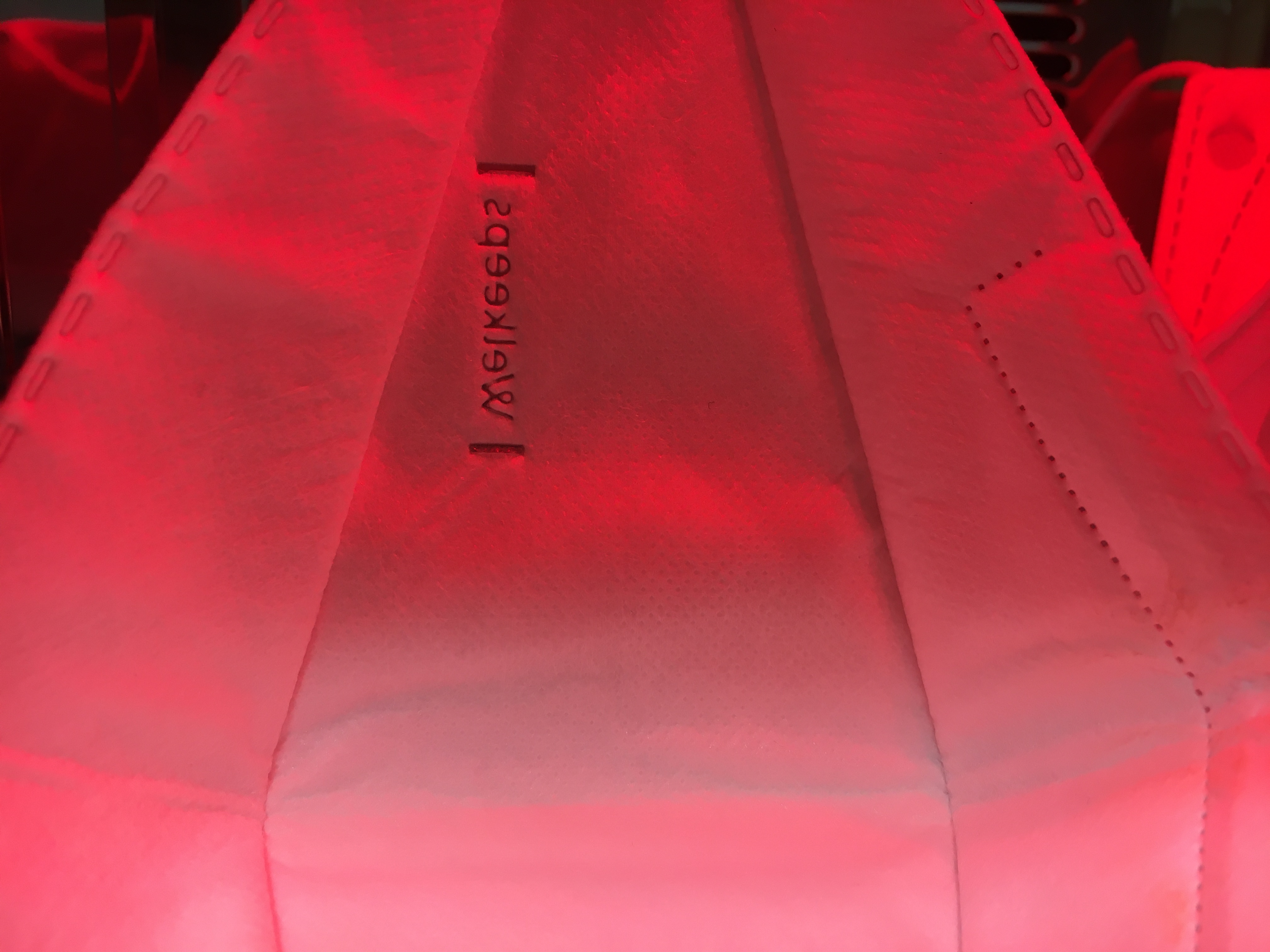 마스크의 안쪽면입니다. 바이러스가 묻지 않게 손이 닿지 않게 해야하고 자외선 소독을 하면 좋습니다. 연구 결과에 따라면 자외선으로 바이러스를 죽이고 마스크 자체 성능은 1-2%정도 감쇄시킨다고 하는데 1-2% 정도야 상관없는 수준입니다.