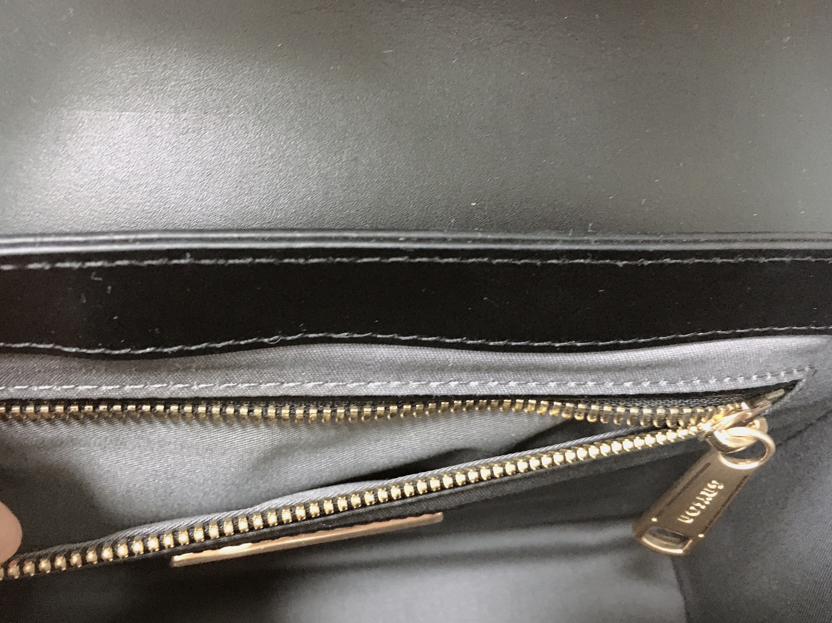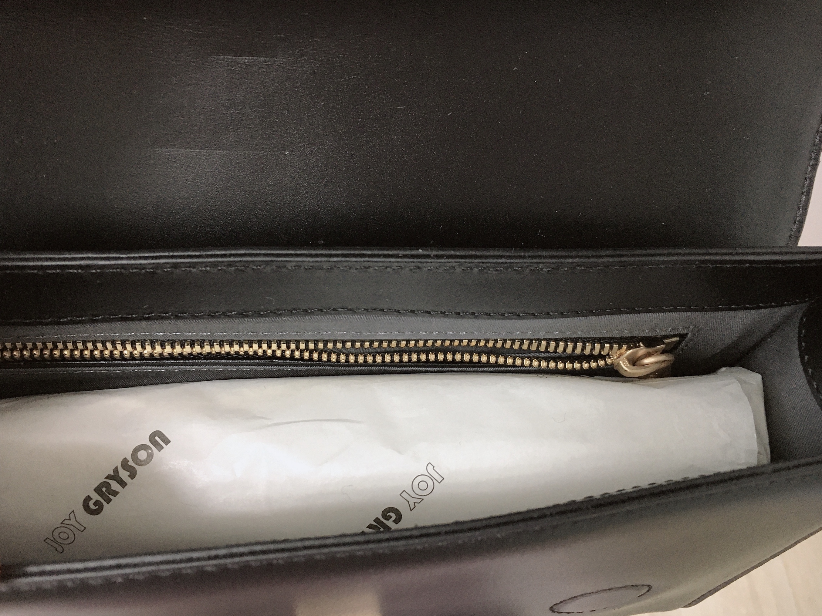 조이그라이슨 나오미백 블랙 LW8SA30910 내부입니다. 지퍼도 금장장식이고요. 조이그라이슨이라고 손잡이에 찍혀있습니다.