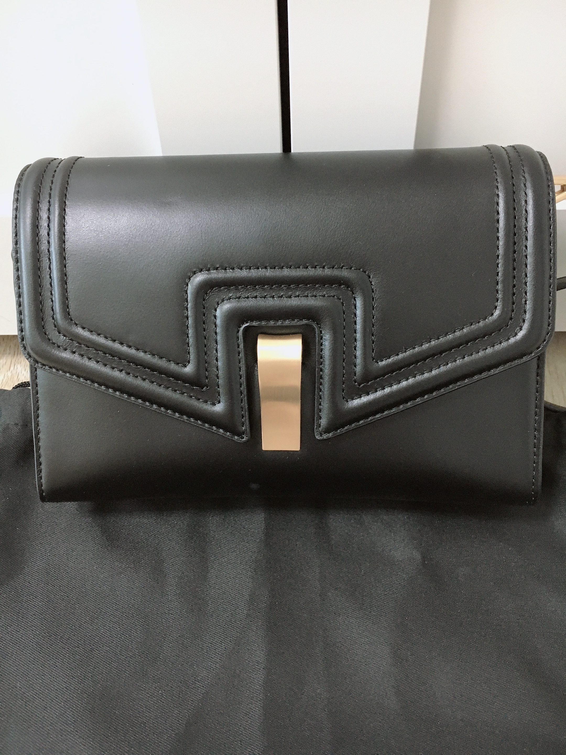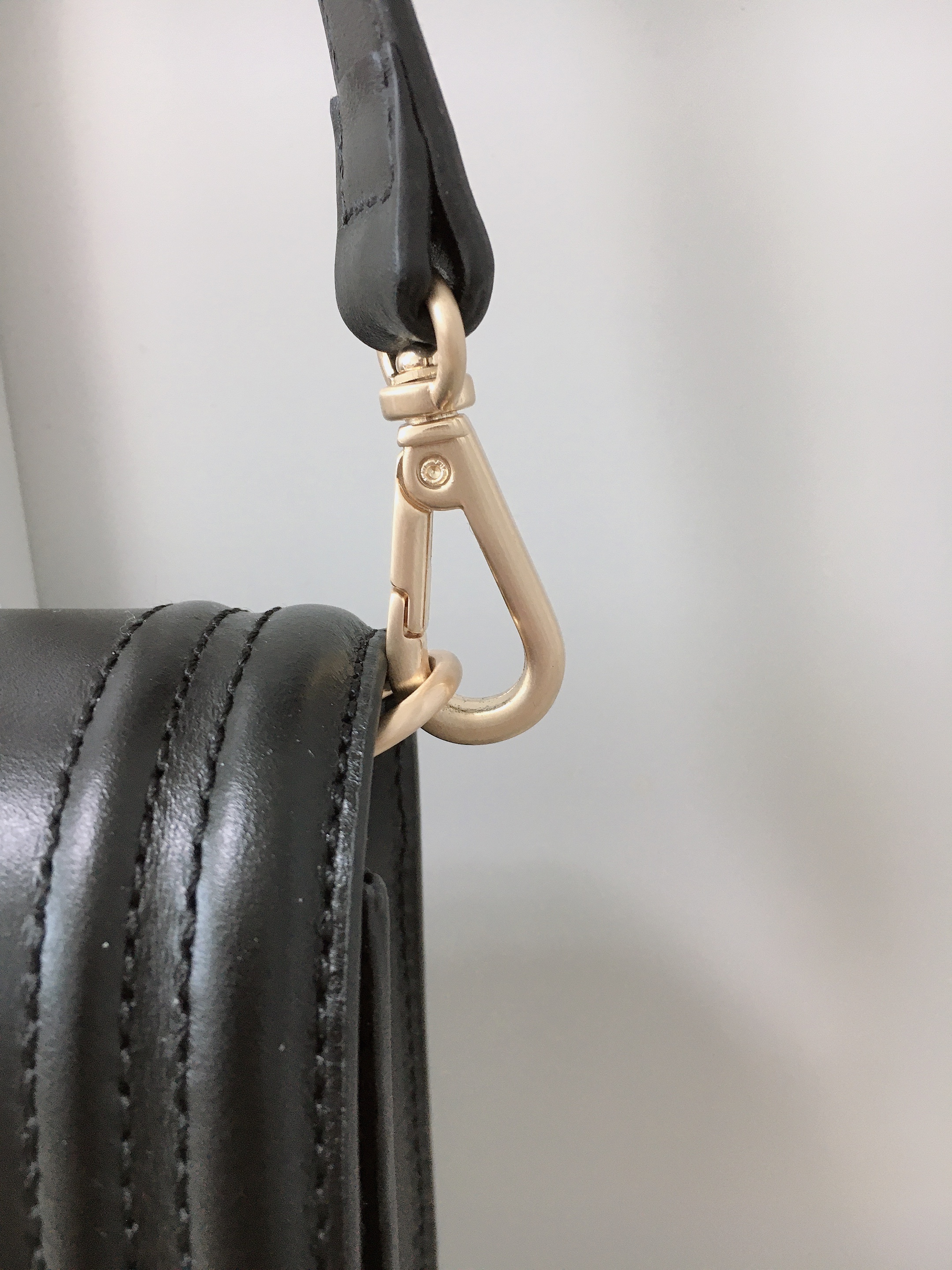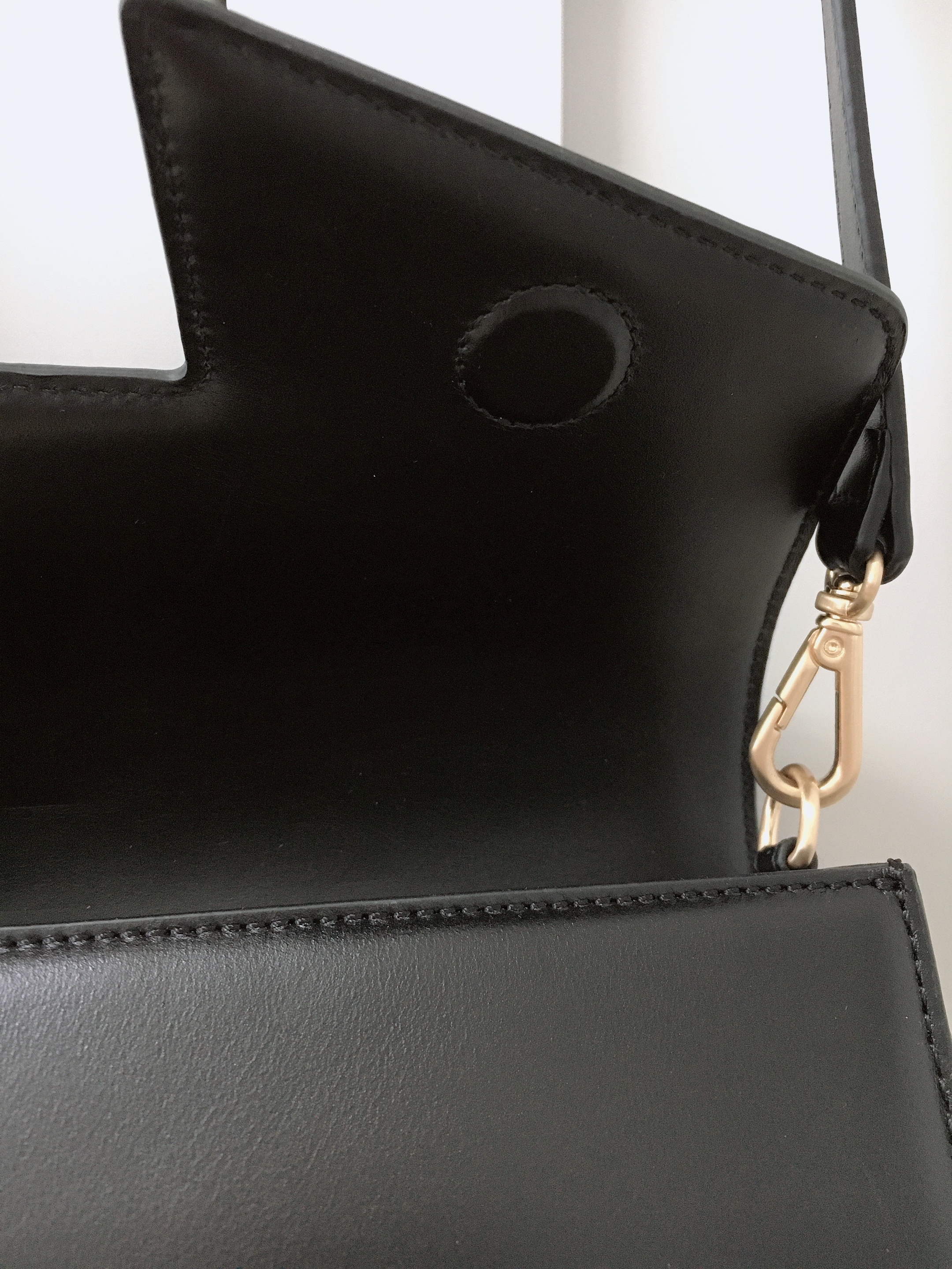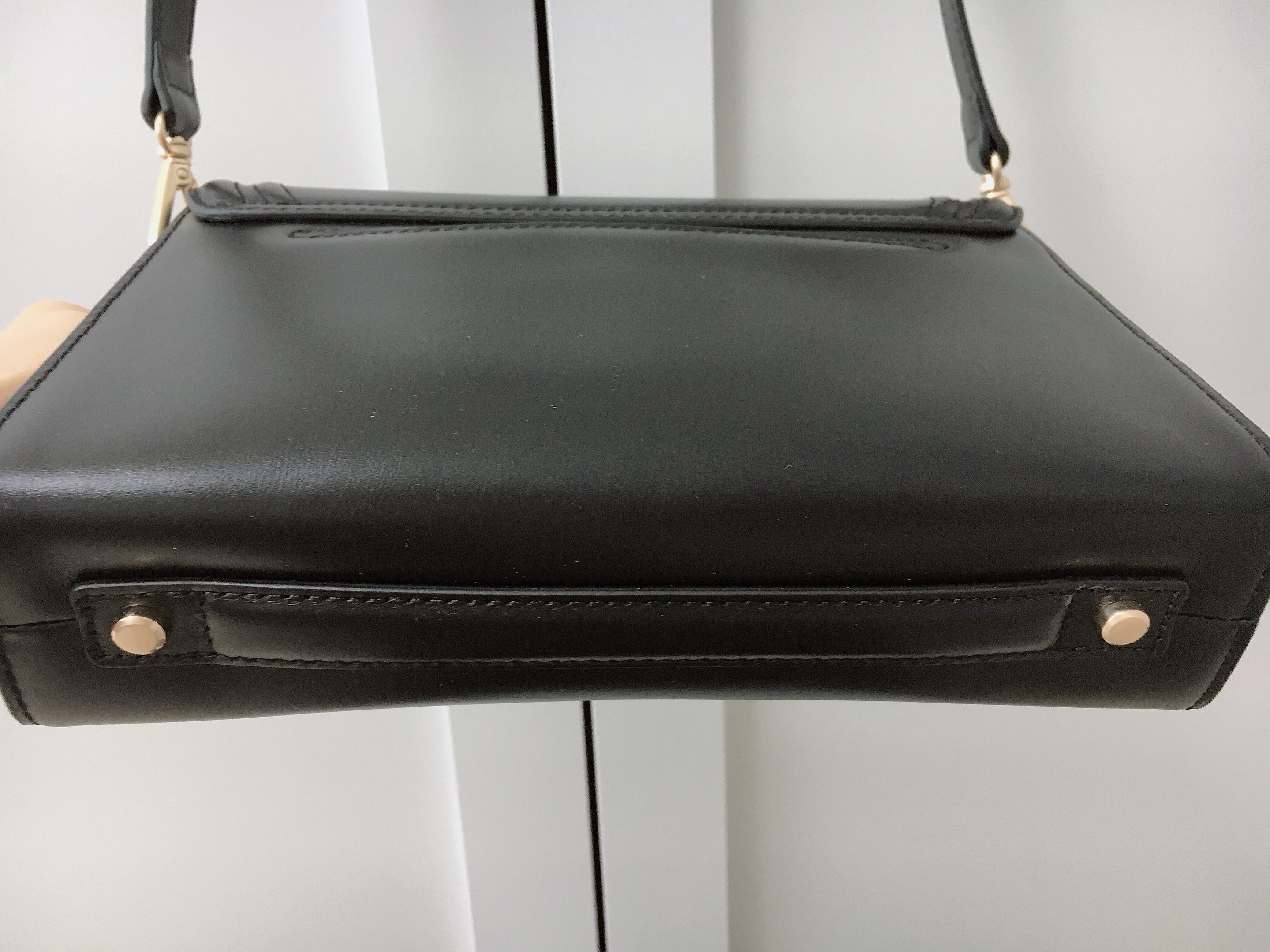 조이그라이슨 나오미백 LW8SA30910 블랙 금장 밑모습입니다. 스트랩을 빼고 가방 밑에 저부분을 손으로 잡아서 파우치백처럼 사용가능하게 했습니다.