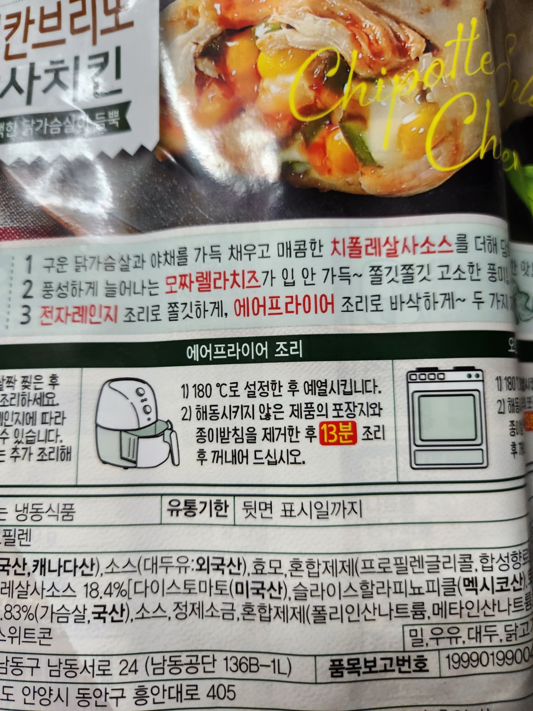매콤한 치폴레 살사소스에 담백한 닭가슴살이 듬뿍있다고 적혀있습니다.