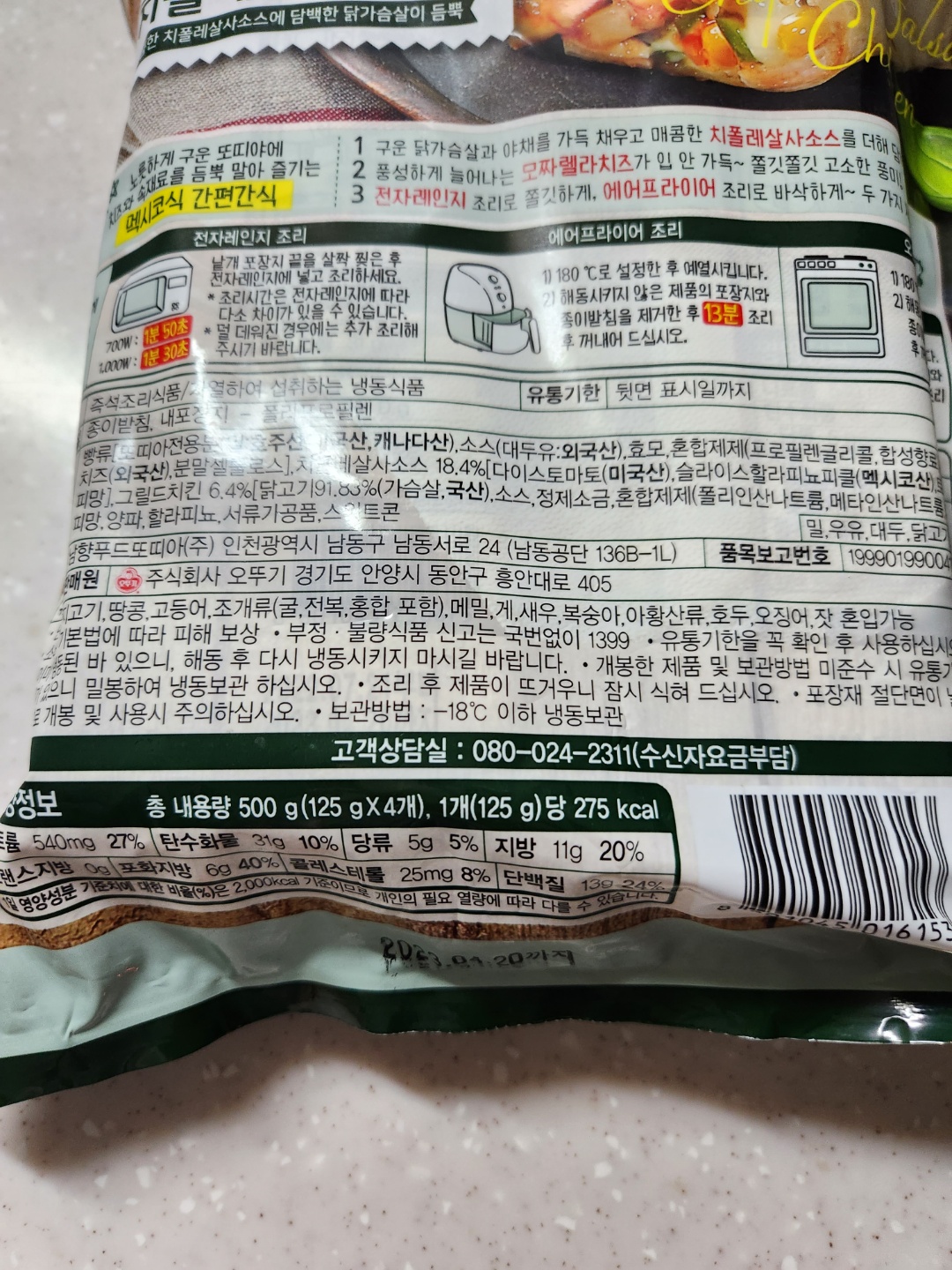 4개 들어있고요. 조리는 전자레인지나 에어프라이어 또는 오븐에서 조리가능합니다.