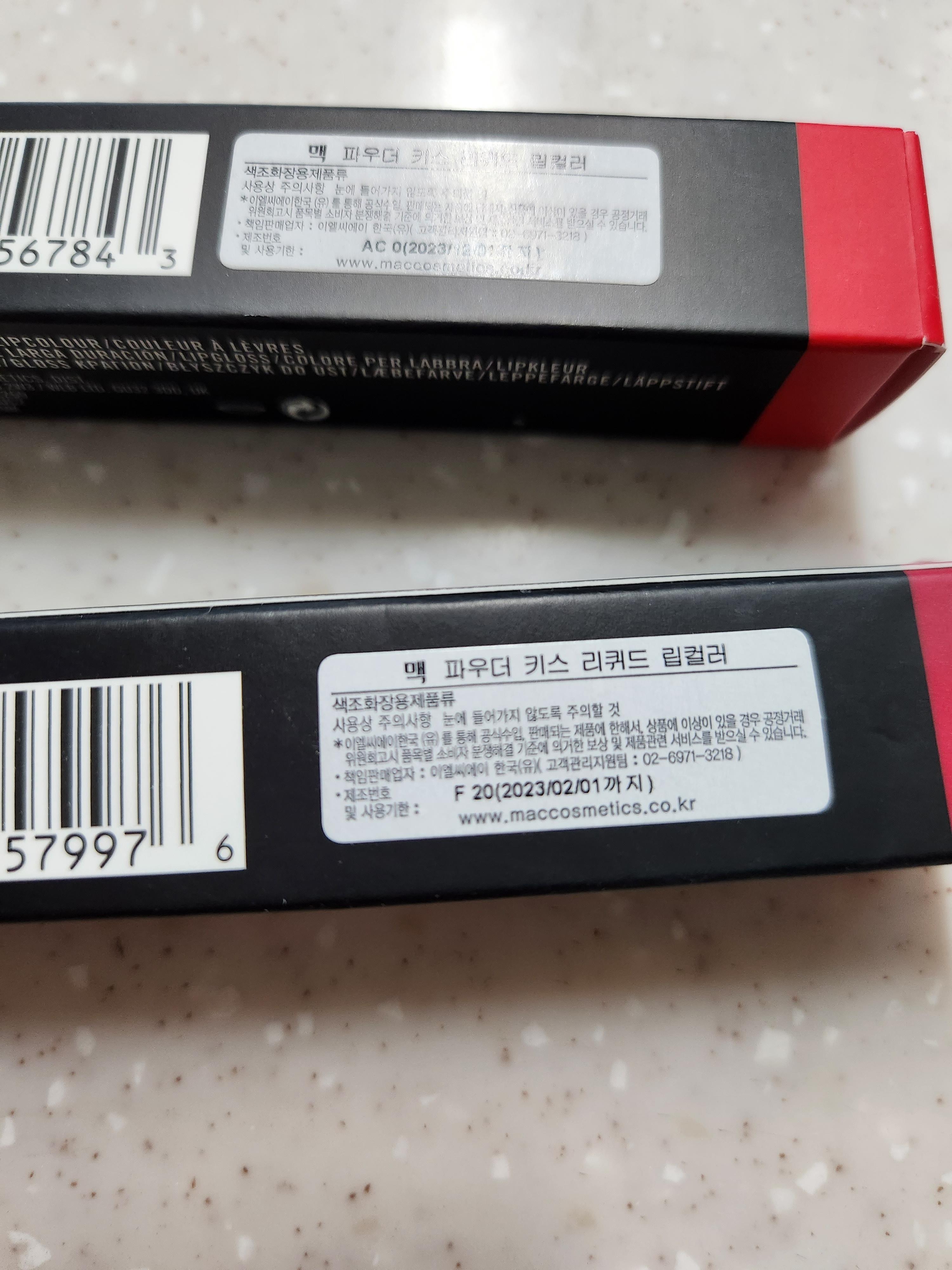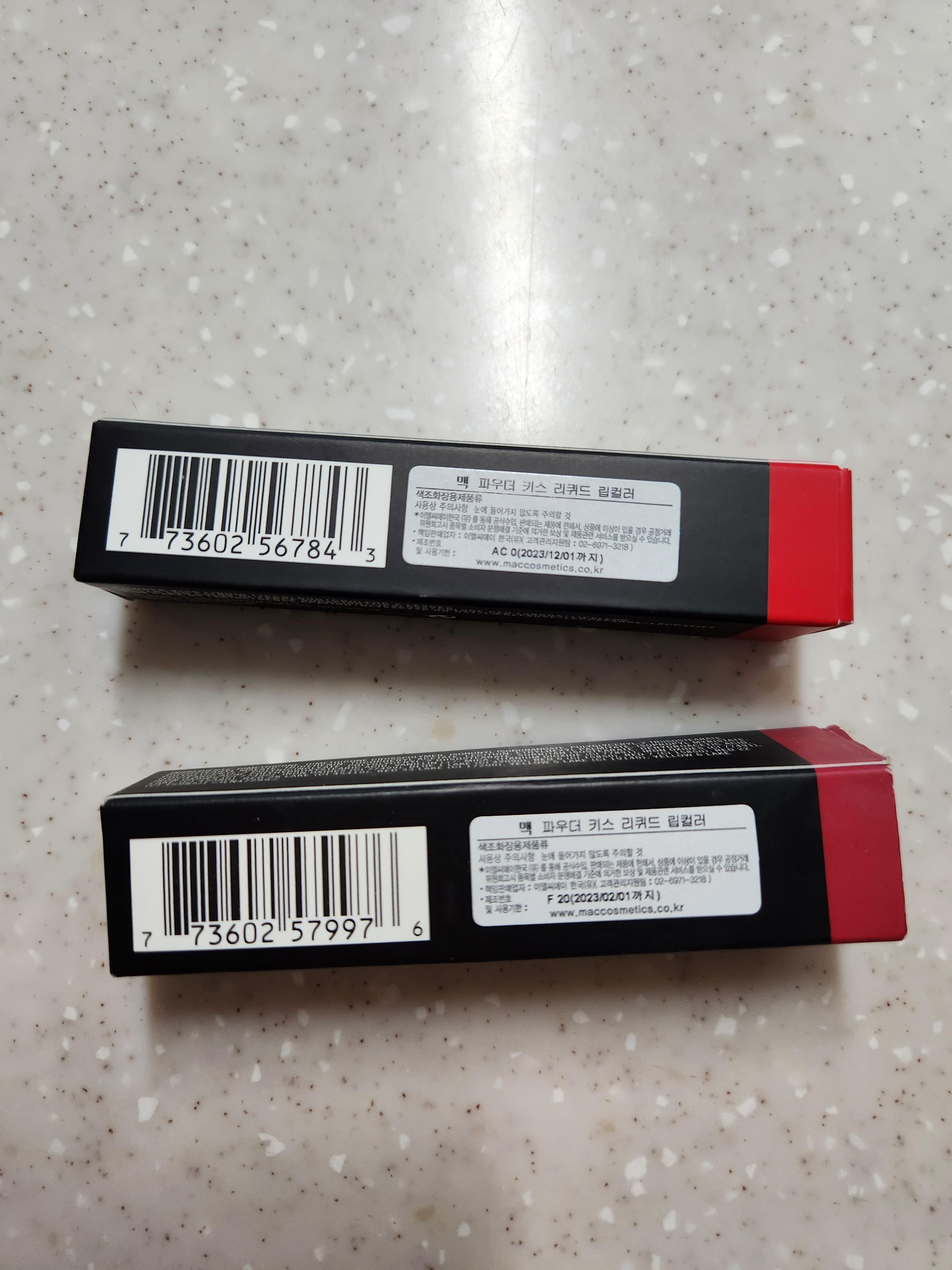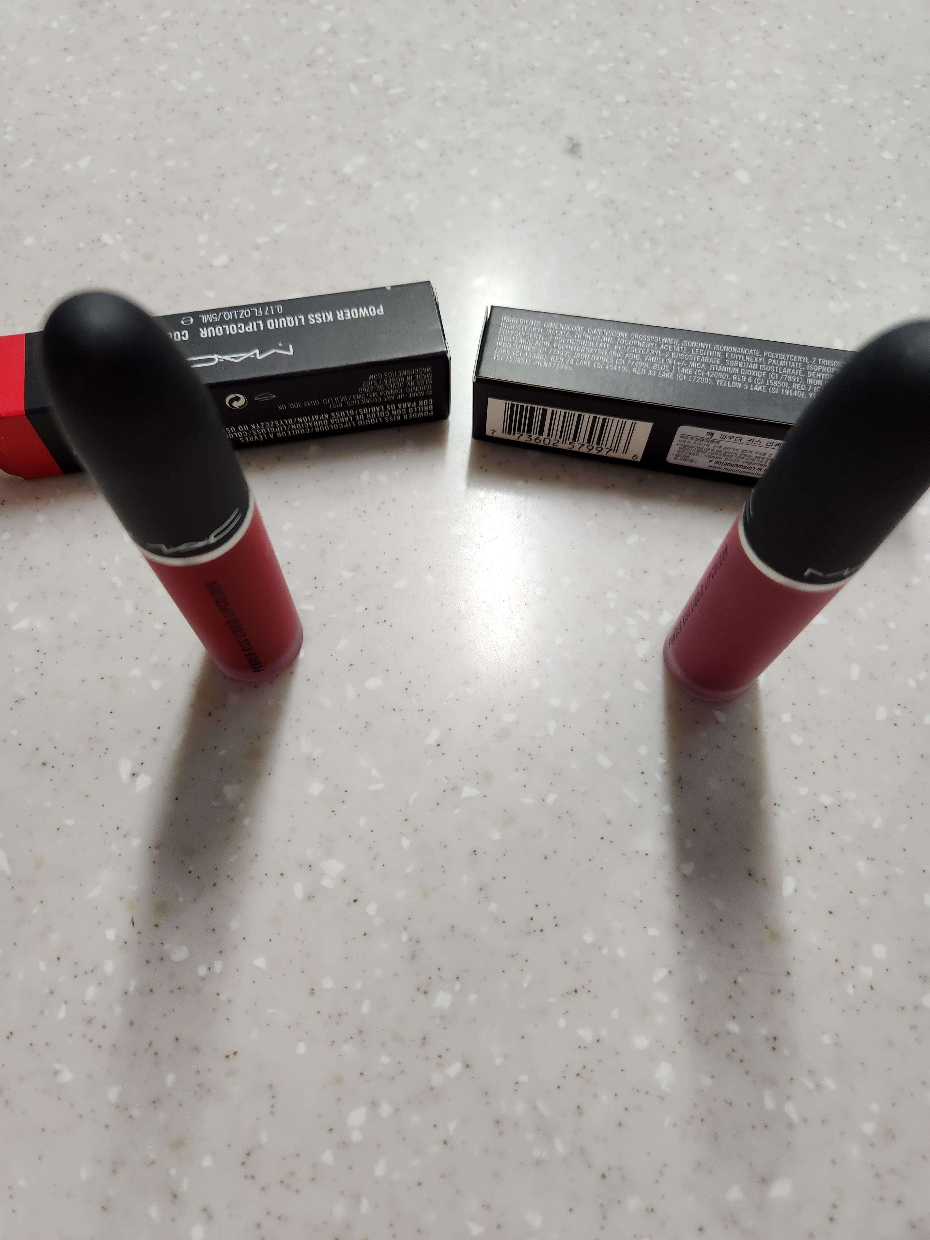 맥 파우더키스 리퀴드 립컬러 2가지 색상인데요.