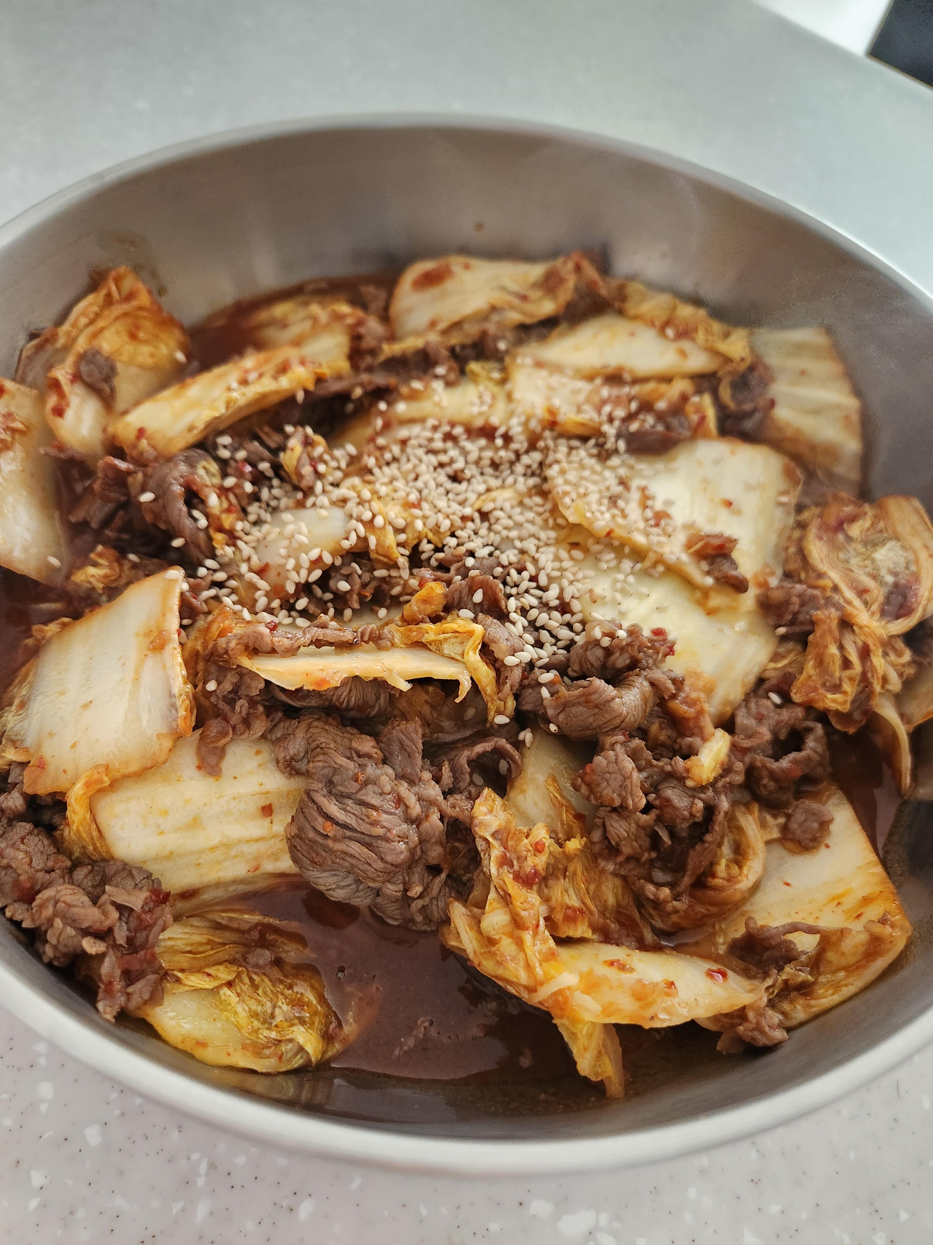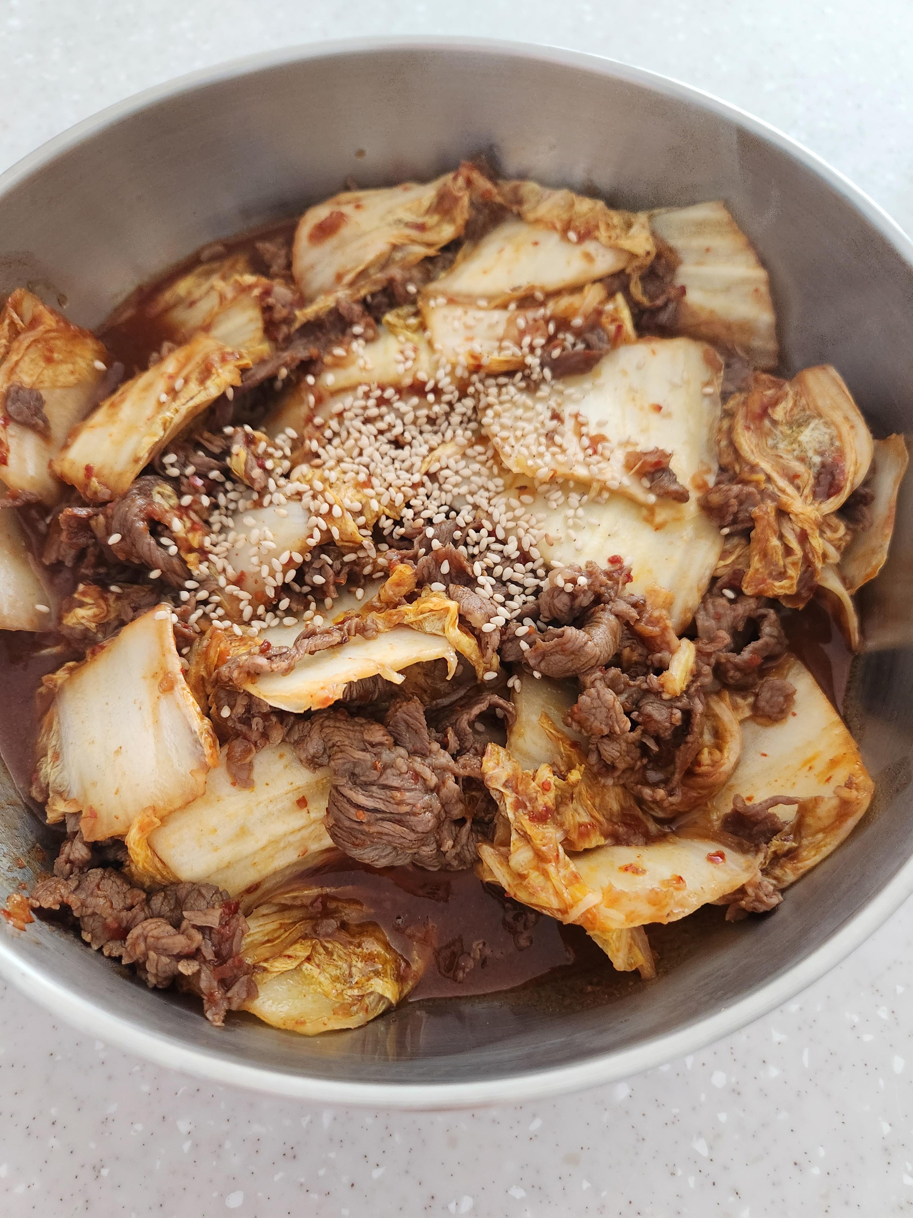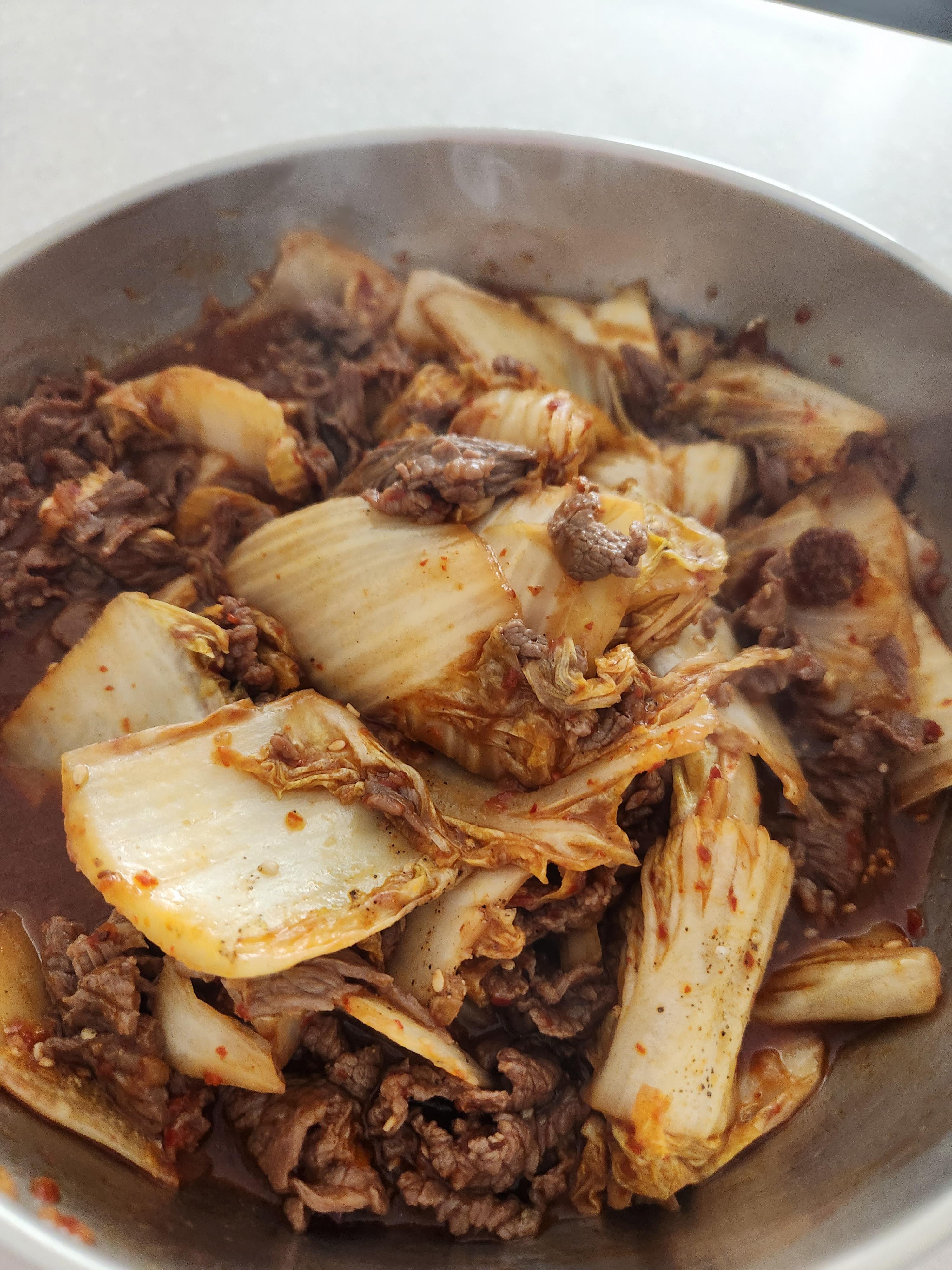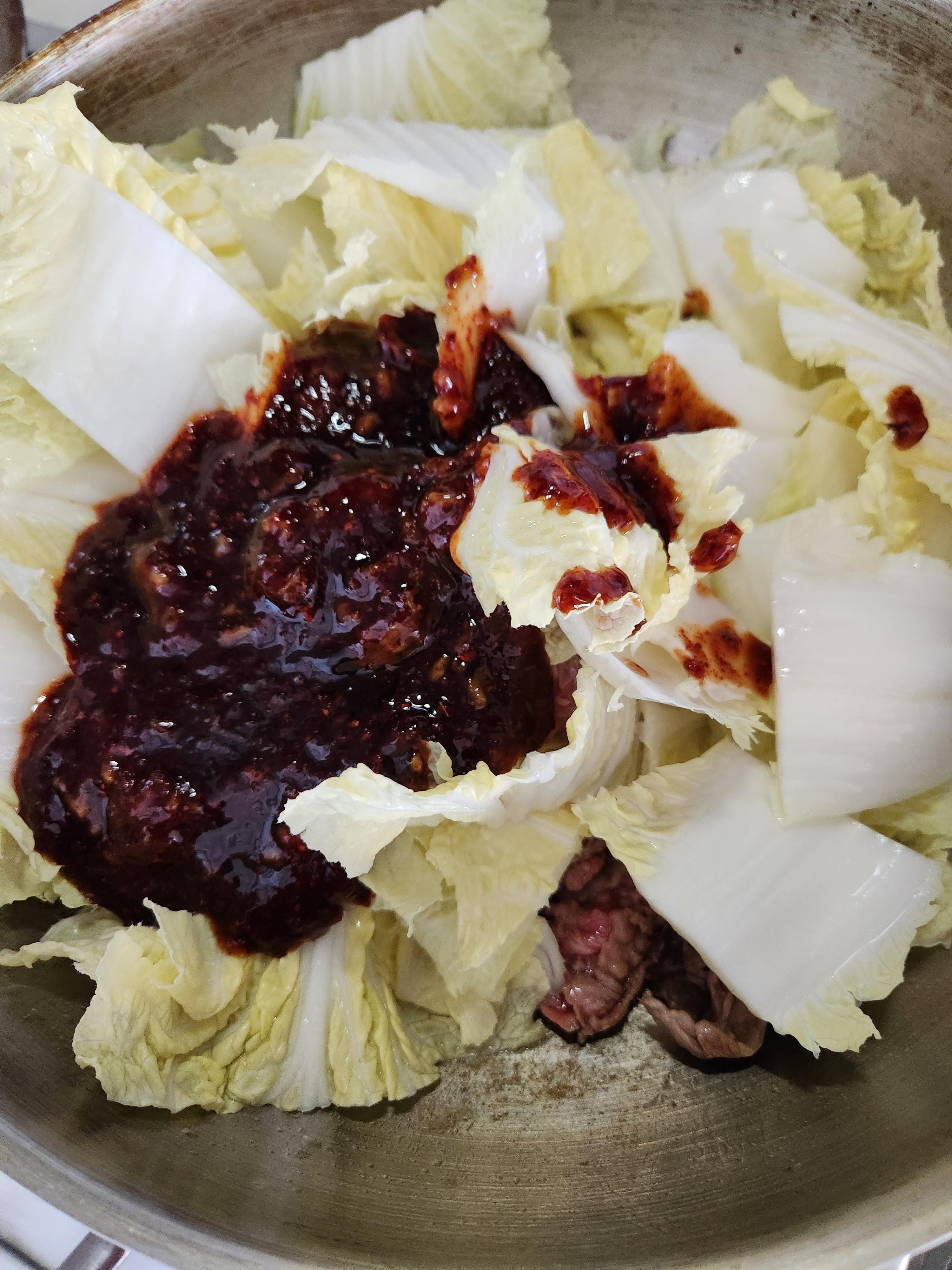 배추와 함께 같이 익혀주는 것을 추천드립니다. 배추까지 익히다가 소고기가 질겨질 수 있거든요.
