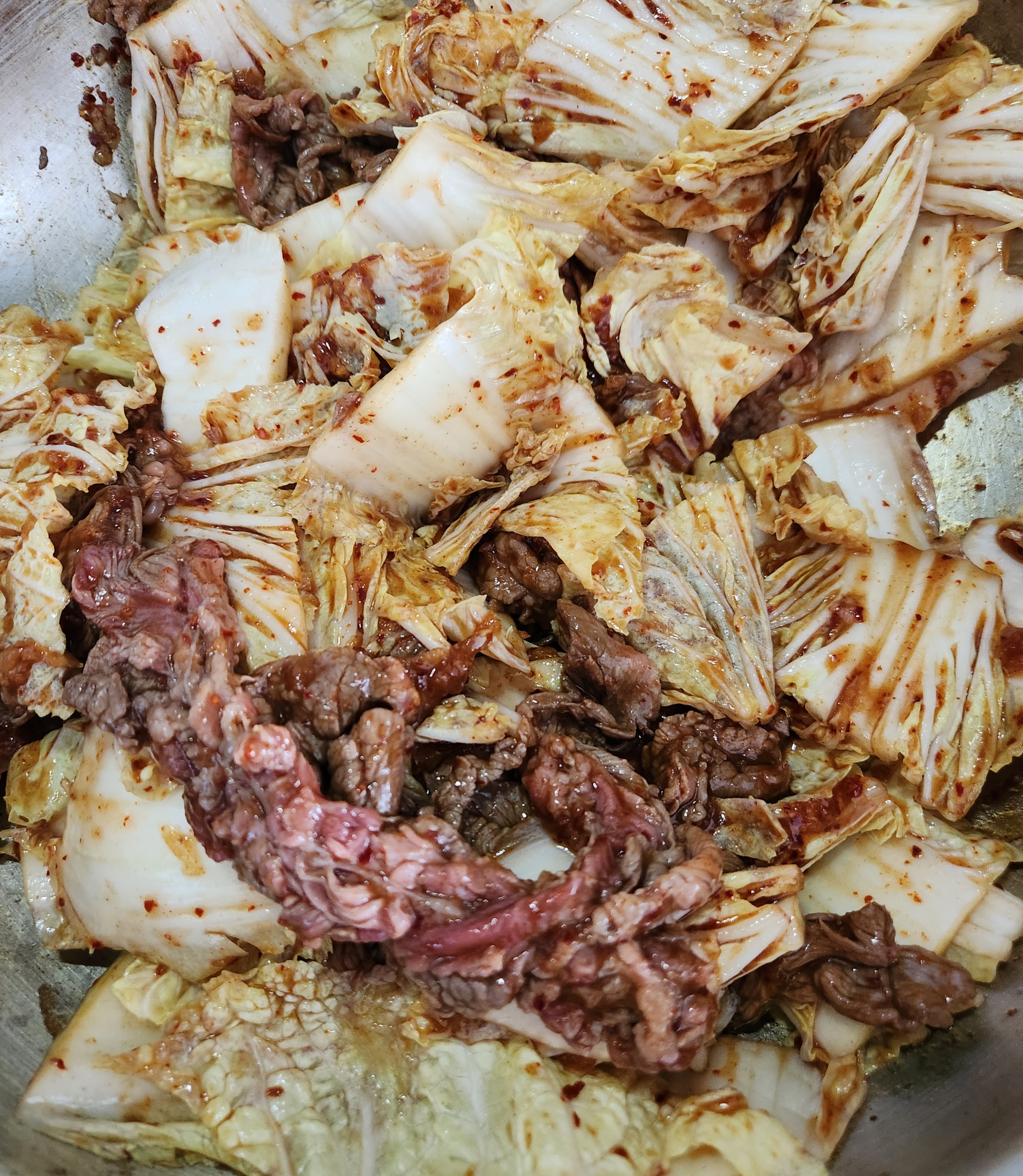 소고기를 아주살짝 익히다가 배추를 넣고요.