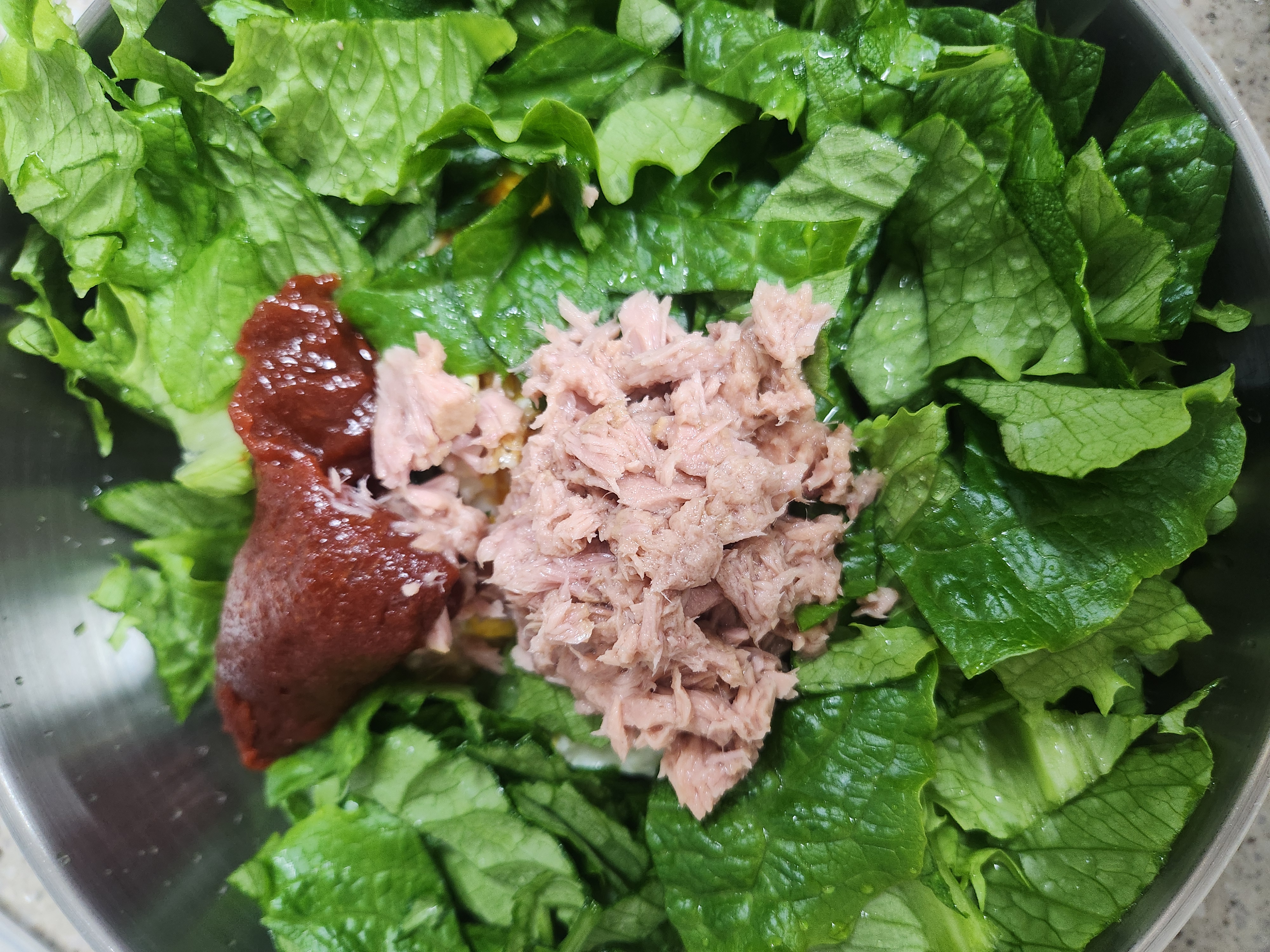 상추를 양껏 넣습니다. 상추가 이정도로 많아도 되나싶을 정도로 넣어도